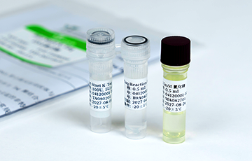 本品是Taq DNA聚合酶双封闭抗体与Taq DNA聚合酶混合制品,可以进行Hot Start PCR。